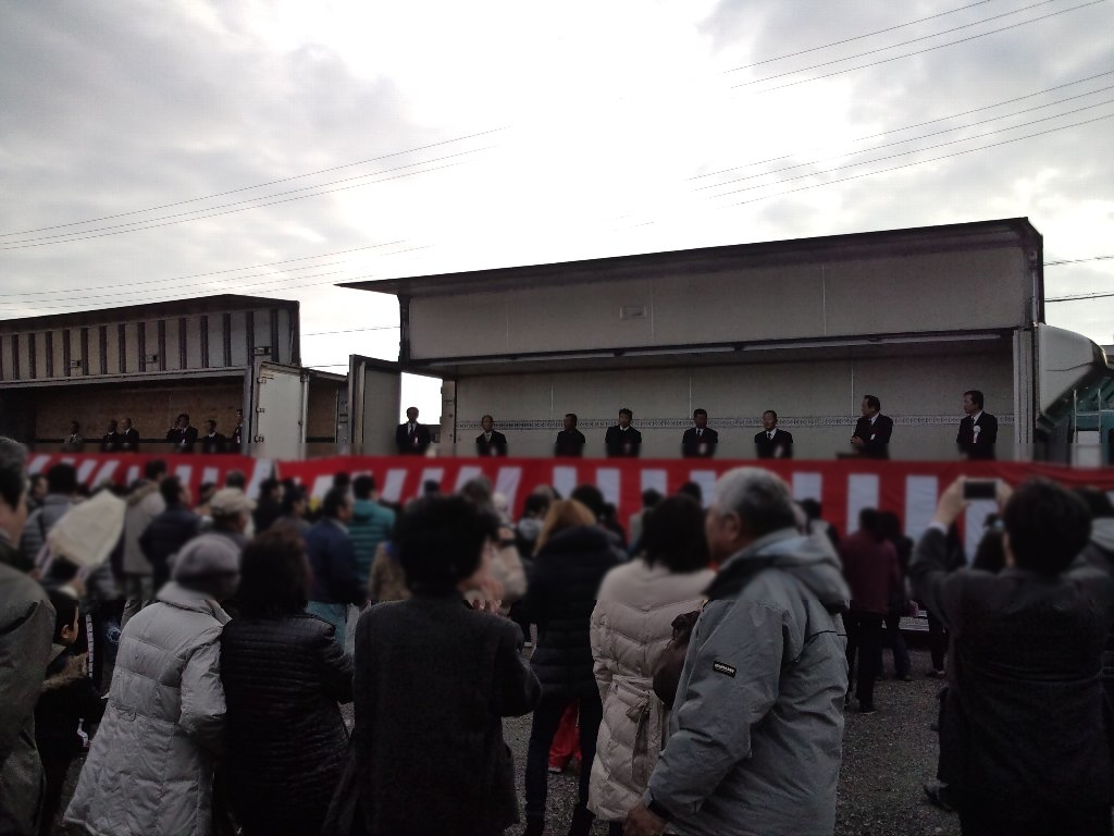 今回の餅まきでは、餅をまく人は農協のえらいさん方のようです。